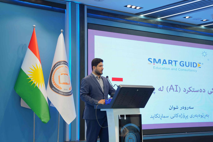 On Thursday 8 May 2025 in the conference hall of Barzani Namir Educational Complex Mr. Sarwar Shwan Smail Project Manager of SmartGuide Foundation and Educational Technology Trainer for Education and Consulting presented a seminar on Artificial Intelligence (AI) in education. The seminar was dedicated to the teachers of Barzani Namir Educational Complex.