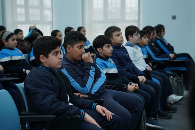 Two outstanding sixth-grade students, “Ahmed Yadgar” and “Barin Aram,” delivered a valuable seminar on the topic of Respect (Al-Ihtirām) in Arabic. The seminar highlighted the meaning and importance of respect as a fundamental cornerstone of successful social relationships. Additionally, it clarified the individual’s responsibility toward society, with the aim of cultivating a conscious and morally educated generation.